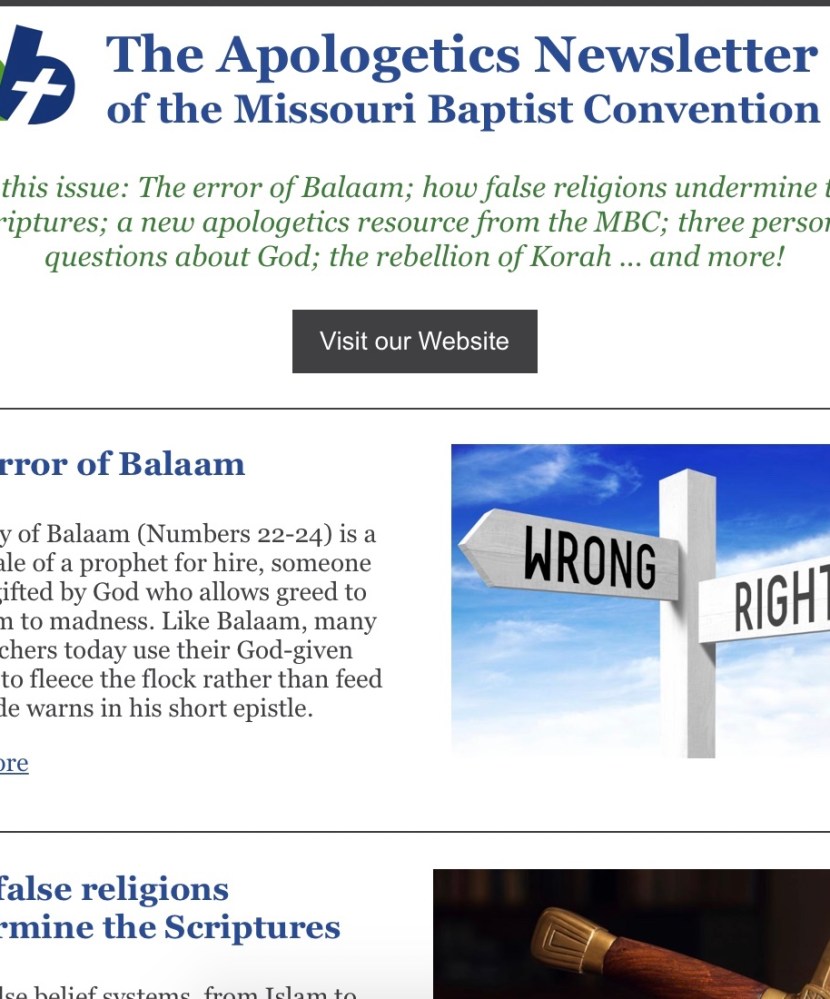 May – (1) What is the doctrine of the Incarnation? (2) Who is the angel of the LORD? (3) The letter to the church at Thyatira; (4) Register now for Footing Before Foundation; (5) The letter to the church at Pergamum; (6) New resource on the inerrancy of Scripture; (7) Join the Missouri Baptist Apologetics Network.